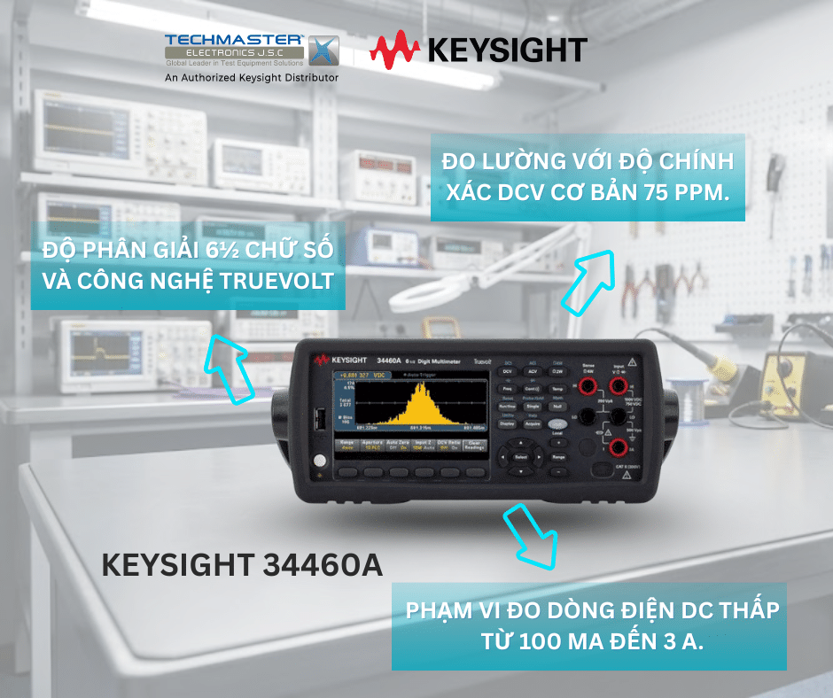 The Keysight 34460A Digital Multimeter is a versatile, high-precision instrument designed to deliver reliable measurements for a wide range of applications in electronics testing and development. Featuring a 6½-digit resolution and Truevolt technology, it provides exceptional accuracy and confidence in results by compensating for real-world signal noise and error sources. Its measurement capabilities include DC/AC voltage, DC/AC current, resistance (2- and 4-wire), frequency, capacitance, continuity, and diode testing. With a basic DC voltage accuracy of 75 ppm and a wide range of supported input signals, the Keysight – 34460A is well-suited for demanding test scenarios.