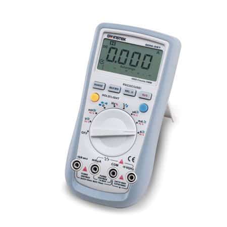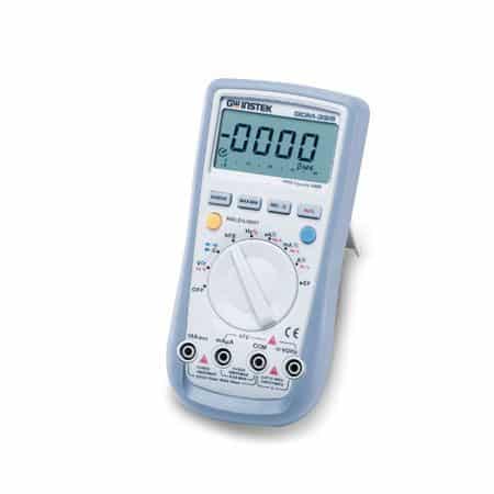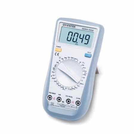 The GDM-300/400 Series Hand Held DMM are a compact, high precision, battery operated multimeter series designed to meet most of the daily needs for design engineers as well as service engineers. The GDM-300/400 series design is driven by mobile-oriented features, such as automatic power down to preserve battery life, a large backlight display for crisp viewing, a rotary selector switch and clear-cut push buttons to ease operation. The basic functions match the depth of bench-top multimeters: fuse-protected current input, true RMS for accurate AC measurements, Auto ranging, Duty cycle, and Relative mode. These compact, reliable, and economical devices are ideal for any engineer.