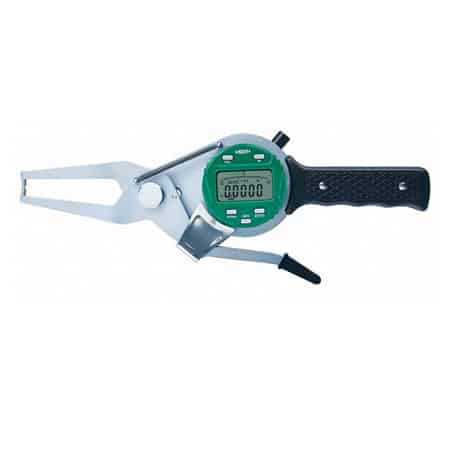 Insize 2132-60 provides accurate external dimension measurements of tube thickness, hole diameters, groove thickness and other hard-to-reach dimensions. Measurements are shown on an easy-to-read LCD display. The spring-loaded lever makes the thickness gage simple to use in tight spaces, and the operational buttons provide quick feature and measurement access.