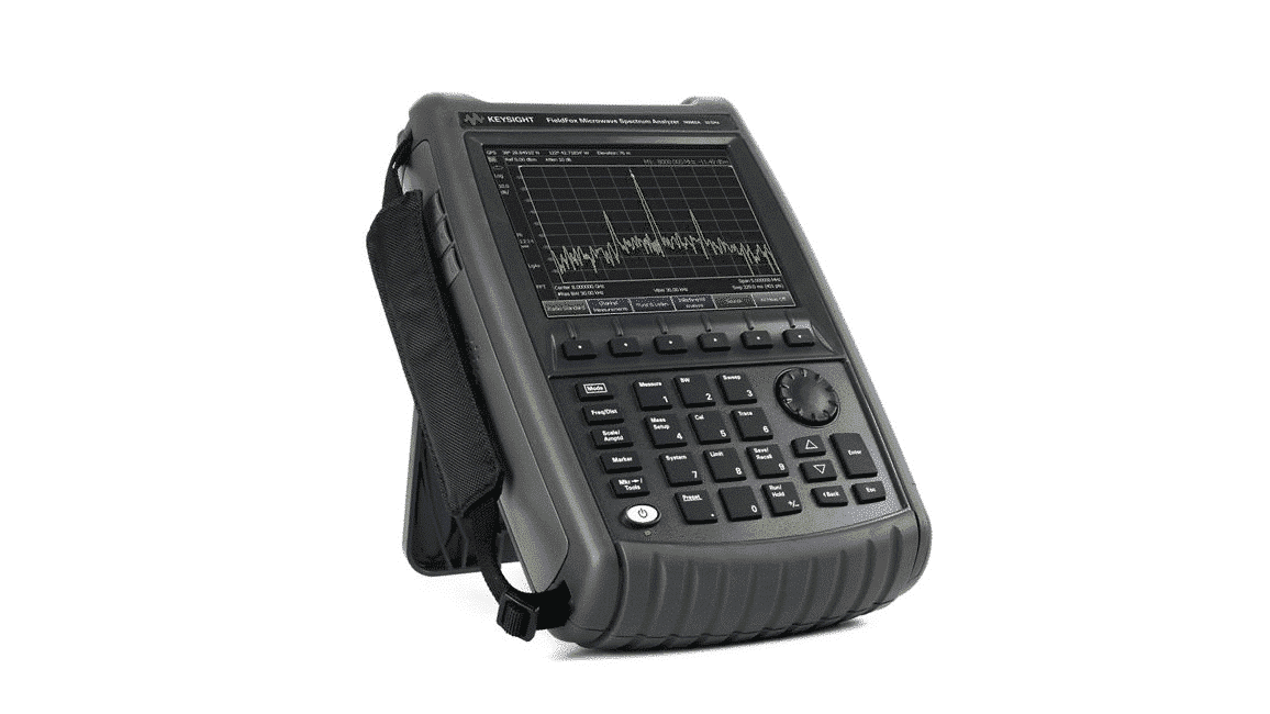 The N9960A FieldFox is a compact, rugged handheld spectrum analyzer packed with capabilities for RF professionals. It features microwave spectrum analysis, interference detection, distance-to-fault tracking, preamplifier, power meter, and more—perfect for field diagnostics and advanced troubleshooting.