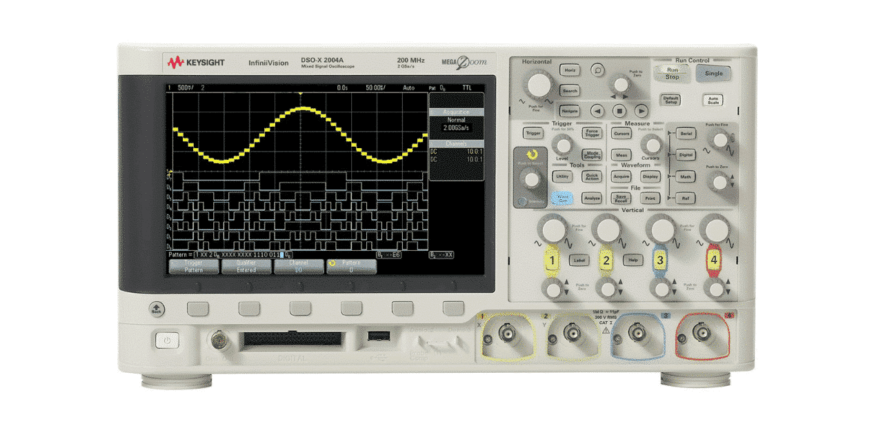 The Keysight DSOX2004A oscilloscope stands out with its sampling rate of up to 2 GSa/s and memory of 1 Mpts per channel. This enables you to capture and analyze complex signals with high accuracy and detail. With 4 input channels, this oscilloscope allows you to observe and compare multiple signals simultaneously, effectively meeting the measurement needs in advanced engineering applications.