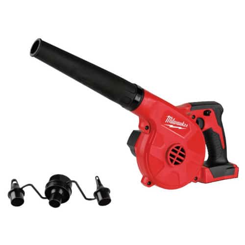 The M18™ Compact Blower (Milwaukee M18 BBL-0, Milwaukee 0884) delivers the fastest jobsite cleanup.