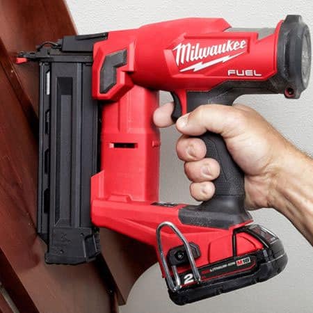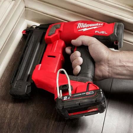 Our M18 FUEL™ 18 GS Finish Nailer (Milwaukee M18 FN18GS-0X0, Milwaukee 2746) delivers peak productivity at your jobsite, providing you with unmatched nailing performance without the hassle of a compressor and hose. Leveraging our nitrogen air spring mechanism, the M18 FN18GS allows you to consistently sink nails to the proper depth in hard and soft woods while leaving clean nail holes matching the head of the nail. The combination of our POWERSTATE™ Brushless Motor and REDLINK PLUS™ Intelligence delivers you with unmatched fire rate with zero ramp-up time keeping you efficient throughout your day. Additionally, the cordless brad nailer operates using our REDLITHIUM™ Batteries (not included) and sealed compressed nitrogen to drive each nail, completely eliminating the cost of gas cartridges and maintenance associated with competitors’ nailers. Milwaukee 2746 is compact in size, and very lightweight, providing you with unmatched access into tight spaces and limiting your fatigue throughout your day. The M18 FN18GS delivers the pneumatic performance that professional carpenters and remodelers expect with the freedom and convenience of cordless.