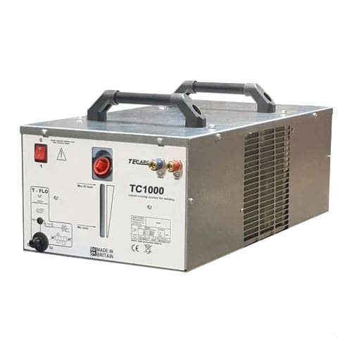 Constructed in galvanized steel for durability, TC1000 units boast M6 fixing points for easy mounting, a front viewing window for fluid level, and an upper tank filling cap. With a 5L tank and a cooling capacity of 1000W/2000W, they are suitable for welding applications up to 500-600 amps.