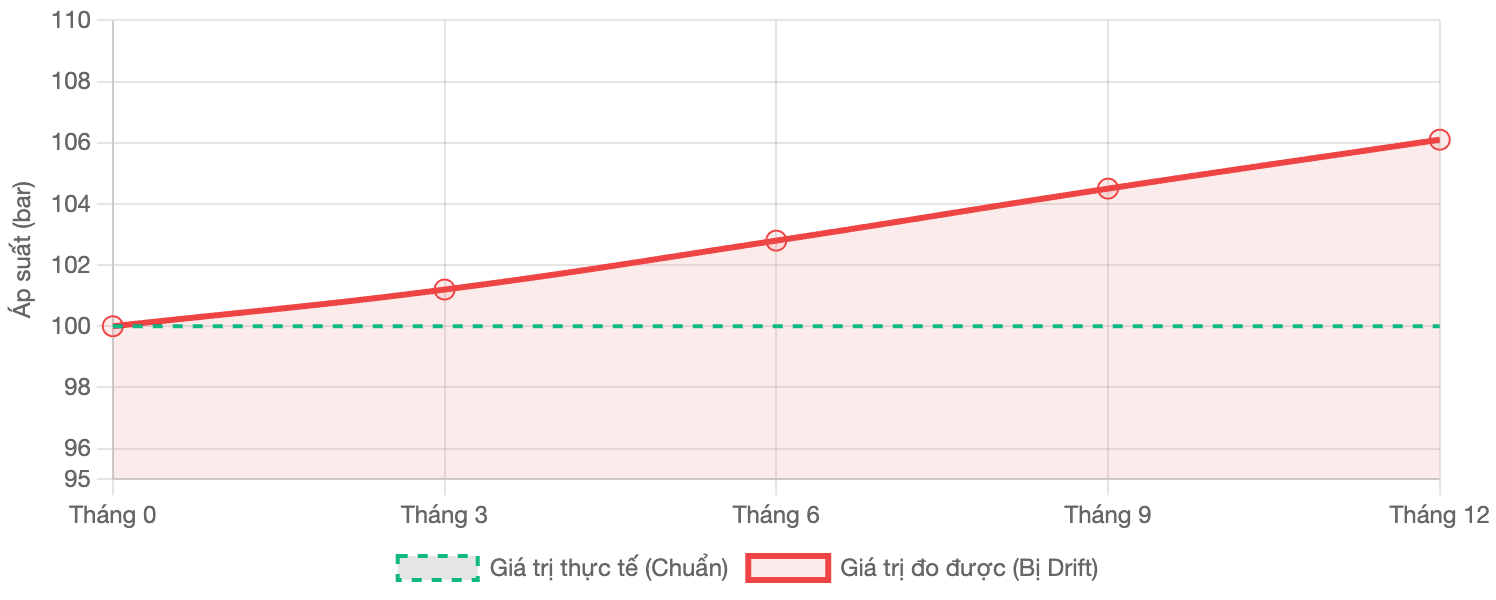Các linh kiện điện tử bên trong máy đo thường bị ảnh hưởng bởi nhiệt độ, độ ẩm và cường độ làm việc. Theo thời gian, các yếu tố này làm kết quả đo bị lệch đi một khoảng nhỏ. Gọi là hiện tượng trôi. Nếu không được hiệu chuẩn, thiết bị có thể báo sai đơn vị như Pa, bar hoặc PSI. Dẫn đến những quyết định sai lầm trong vận hành.