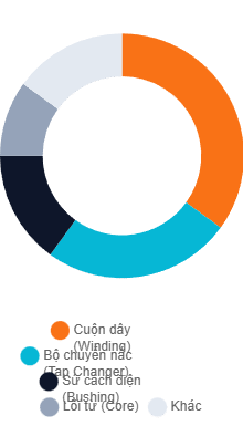 Phân bố các nguyên nhân gây hỏng hóc máy biến áp phổ biến, nhấn mạnh tầm quan trọng của việc đo điện trở cuộn dây và cách điện.