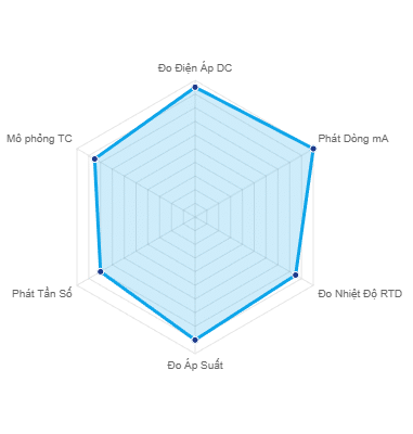 Máy hiệu chuẩn hiện đại không chỉ đo (Measure) mà còn phát nguồn (Source/Simulate) nhiều tham số khác nhau. Biểu đồ Radar dưới đây thể hiện phạm vi năng lực điển hình của một thiết bị cao cấp.