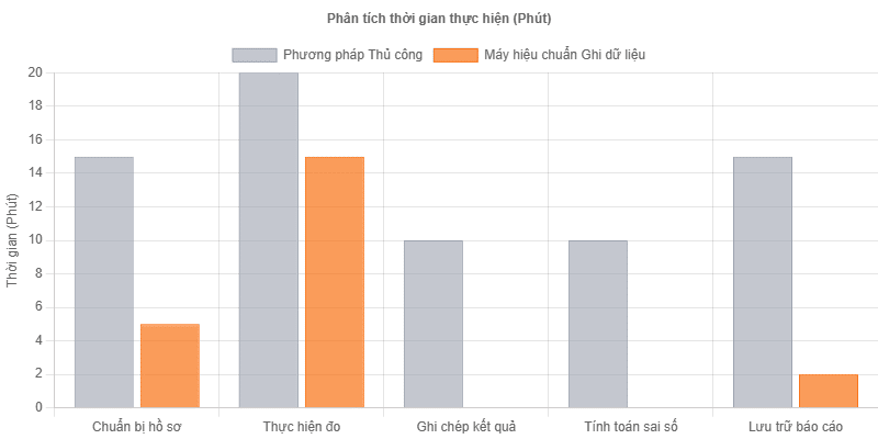 Sử dụng tính năng “Documenting” (Ghi dữ liệu) giúp loại bỏ hoàn toàn lỗi do con người (nhập sai số liệu) và giảm đáng kể thời gian thực hiện. Dữ liệu được so sánh trực quan dưới đây.