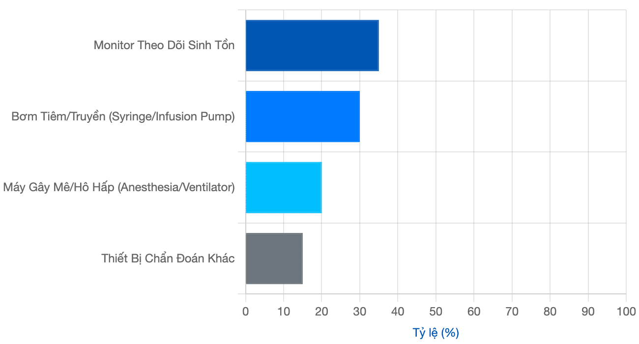 Tỷ lệ các loại thiết bị cần được theo dõi nghiêm ngặt trong một bệnh viện tuyến đầu (dữ liệu giả định).