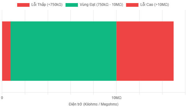- Ngưỡng trên (Upper Limit): 10 MΩ (hoặc 35 MΩ tùy quy trình)