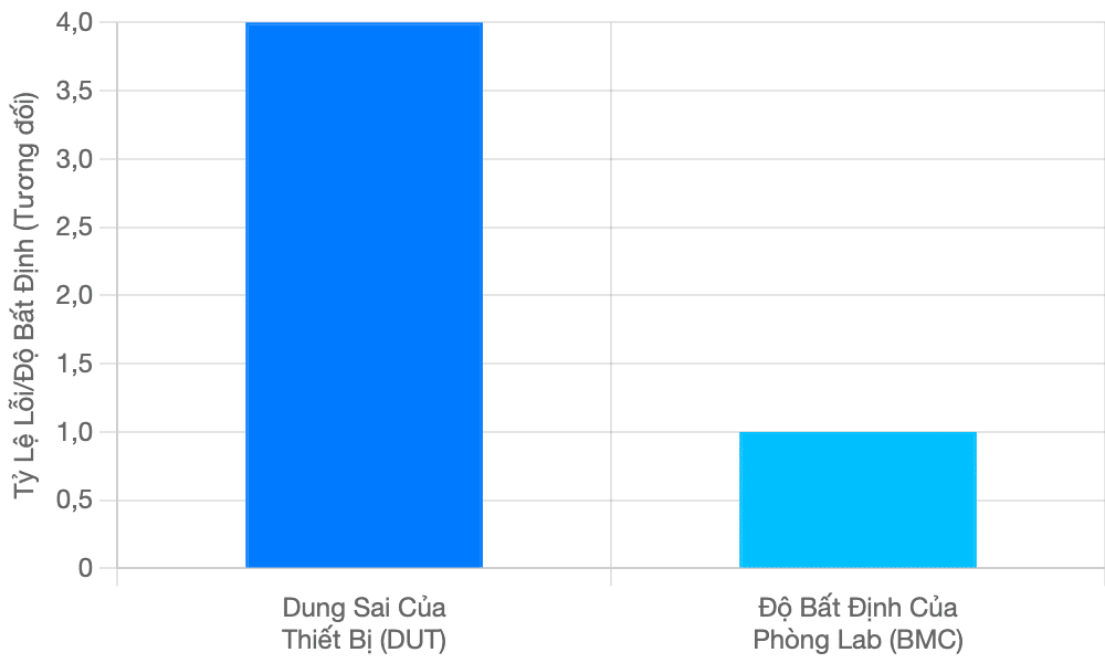 Độ Bất Định Đo Lường (Uncertainty): Đây là thông số quan trọng nhất. BMC là độ bất định tốt nhất mà phòng thí nghiệm có thể đạt được. Để đánh giá chất lượng, bạn phải so sánh BMC của phòng thí nghiệm với yêu cầu dung sai của thiết bị của bạn.