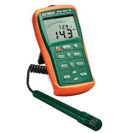 Máy đo nhiệt độ, độ ẩm Extech EA25 ghi dữ liệu lên đến 15,000 bản ghi để tải xuống PC. Hiển thị đồng thời 2 thông số bất kỳ (Nhiệt độ và Độ ẩm hoặc Điểm sương, hoặc Bóng đèn ướt). Chức năng Min/Max lưu trữ và nhắc lại các chỉ số cao nhất/thấp nhất và hiển thị thời gian đã trôi qua của các chỉ số tối thiểu/tối đa. Lập trình tự động tắt nguồn. Đơn vị nhiệt độ °C/°F có thể chuyển đổi. Chức năng giữ dữ liệu cố định việc đọc trên màn hình. Hoàn chỉnh với chân đế, bao da bảo vệ, và đầu dò tích hợp với cáp cuộn 39 inch, phần mềm và cáp RS-232 cách ly quang học, và 6 pin AAA.