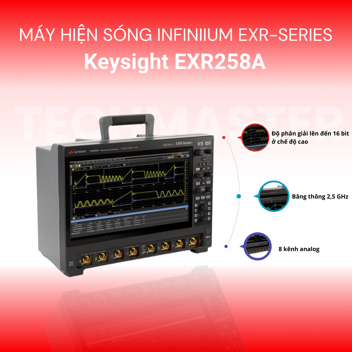 EXR258A tích hợp 8 thiết bị trong một. Gồm: máy hiện sóng, vôn kế số, máy phát hàm, phân tích phổ, kiểm tra mặt nạ, phân tích jitter và giải mã giao thức. Nhờ công nghệ ASIC tăng tốc phần cứng, thiết bị đạt tốc độ đo vượt trội.