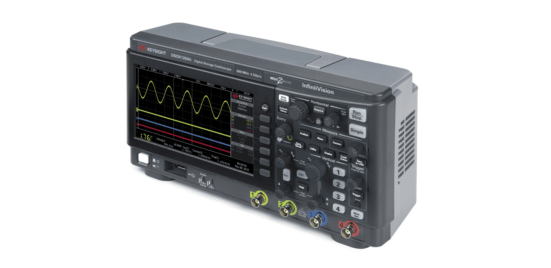 Keysight DSOX1204A với 4 kênh đầu vào. Hơn nữa máy hiện sóng này cho phép bạn quan sát và so sánh nhiều tín hiệu đồng thời. Nhờ vậy đáp ứng tốt nhu cầu đo lường trong các ứng dụng kỹ thuật cao.