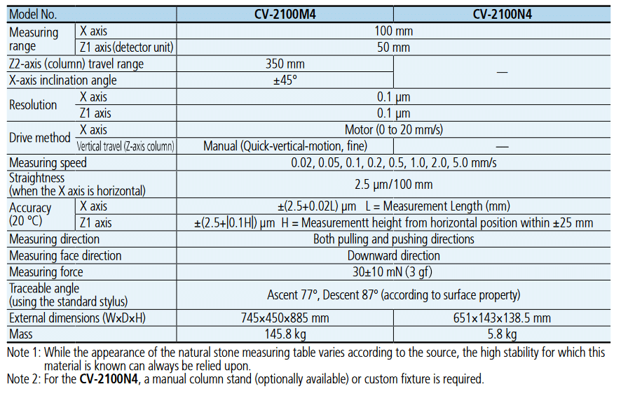 Thông số kỹ thuật Mitutoyo Contracer CV-2100 Series