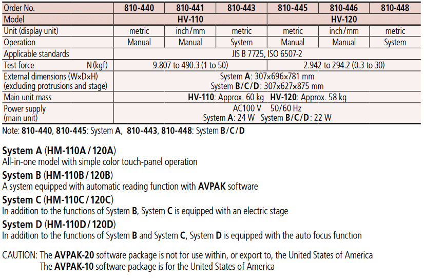 Thông số kỹ thuật Mitutoyo Dòng HV/ HV-100 M áy đo độ cứng Vickers H