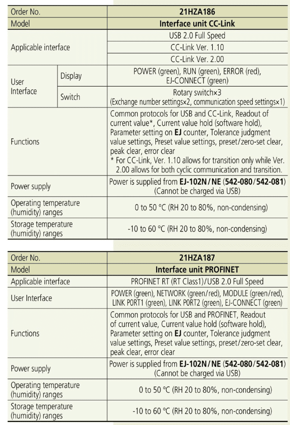 - Dữ liệu có thể được xuất ra thông qua giao diện công nghiệp (CC-Link) bằng cách liên kết bộ đếm nhỏ gọn (bộ đếm EJ) với bộ giao diện.