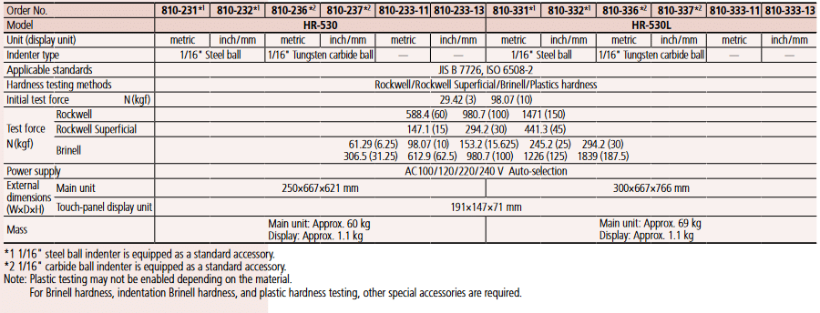 - Dòng máy đo độ cứng HR-530 series 810 đáp ứng đa dạng các nhu cầu đo độ cứng khi cho phép kiểm tra độ cứng Brinell cũng như kiểm tra độ cứng theo trình tự tải của chất dẻo, cùng với kiểm tra độ cứng Rockwell và Rockwell Super Surface.