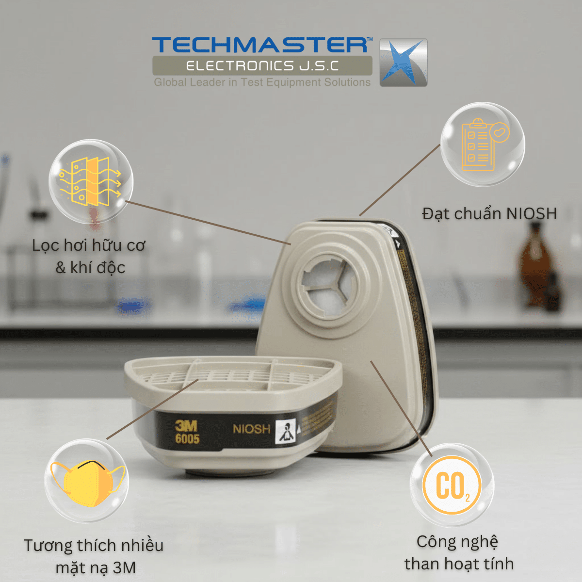 Phin Lọc Hơi Formandehit/Hơi Hữu Cơ 3m™ 6005 đạt chuẩn NIOSH lọc khí formaldehyde và một số hơi hữu cơ. Dùng với bán mặt nạ hoặc nguyên mặt nạ dòng 3M™ 6000, 7000 và FF-400.